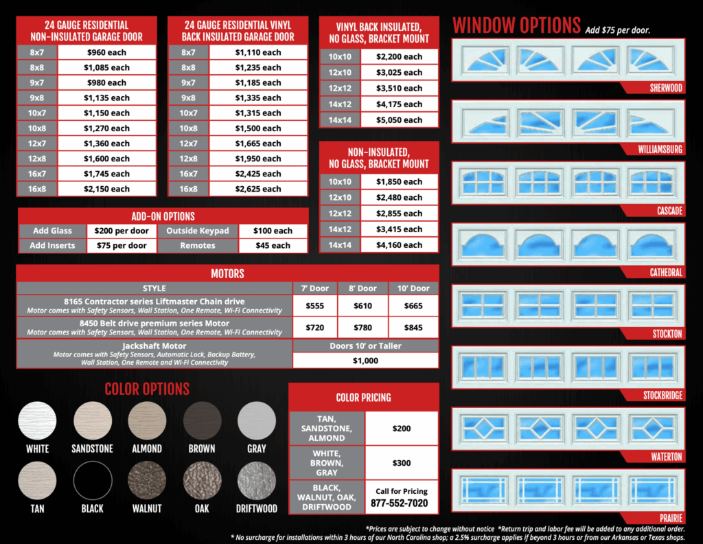 Free delivery & installation available in select areas. No surcharge within 3 hours of our North Carolina shop; 2.5% surcharge applies beyond 3 hours or from our Arkansas/Texas shops.